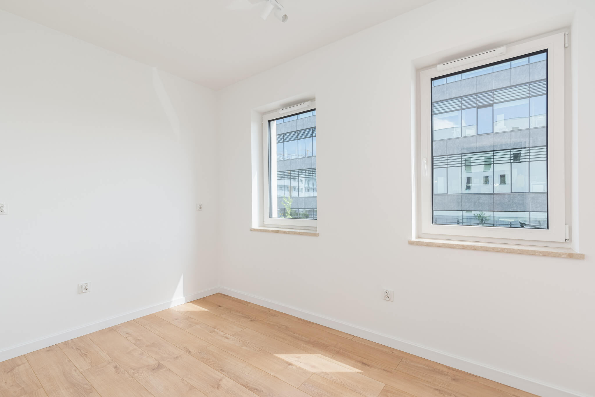 - Duże przeszklenia, widok na zielony dziedziniec, ekspozycja okien na wschód