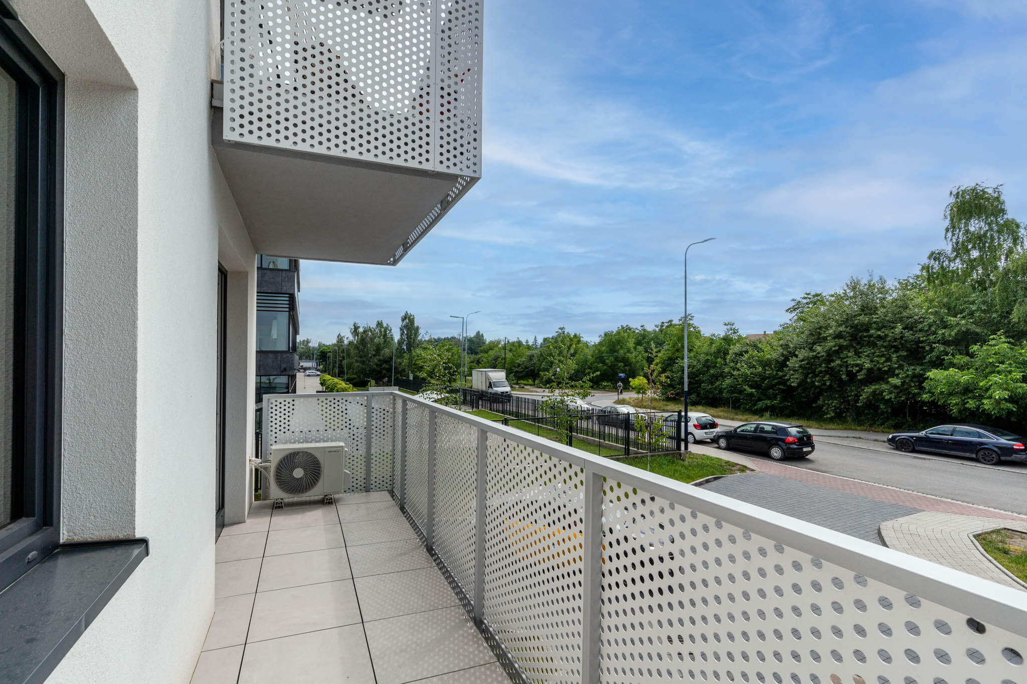 Dopełnieniem całości jest klimatyzacja zapewniająca komfort przez cały rok oraz przestronny balkon z zachodnią ekspozycją – idealne miejsce na relaks po pracy, kolację o zachodzie słońca lub poranną kawę w ciszy i zieleni.